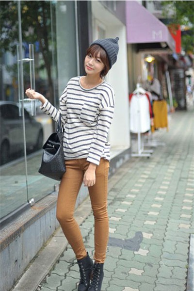 Chị em hãy thử kết hợp một chiếc áo thun tay dài form rộng cùng với chiếc quần skinny ôm sẽ khiến cho bạn trông thật cá tính , trẻ trung và năng động.
